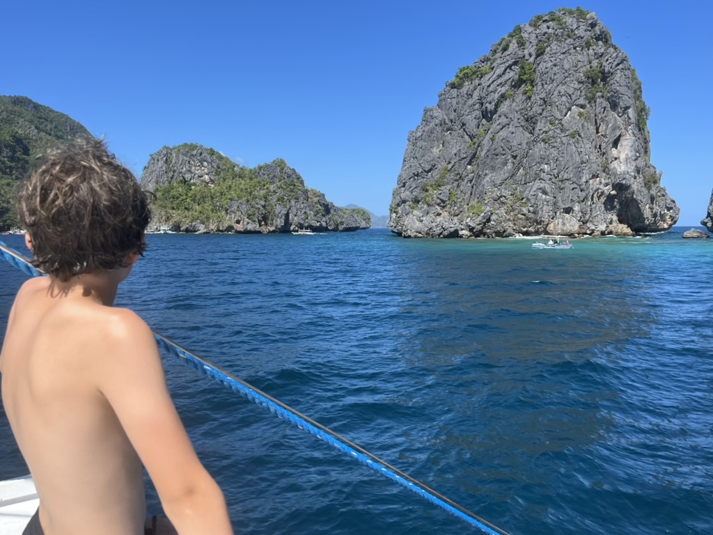 À El Nido on a fait un tour de snorkeling un petit peu comme à Fidji. On est partie tôt le matin pour se rendre à la plage. Il y avait beaucoup de bateaux dans la baie donc on devait se tremper pour se rendre dans le bateau. Une fois dans le bateau, on était tout mouillé. On était trente-deux dans le bateau sans compter l’équipage. Notre première destination était à côté d’une plage. On pouvait faire du snorkeling. On a vu beaucoup de coraux et de poissons. Notre deuxième arrêt était à Big Lagoon où on devait faire du kayak. L’eau était vraiment bleue.