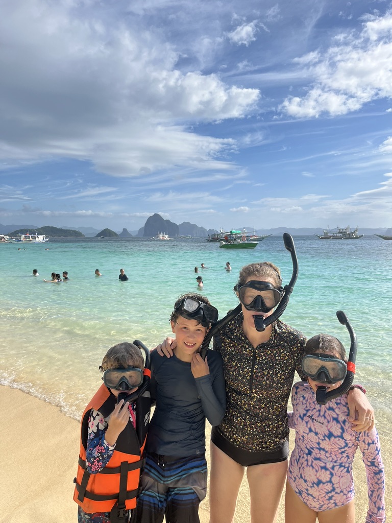 The day before island-hopping started wonderfully. We headed down to the beach (Corong Corong) to get a little physical activity: a relaxed soccer game on the sand that was the very portrait of family bliss. What better thing to do after the game than to wade into the water to cool off? Well, in hindsight, it would have been better to do practically anything else!