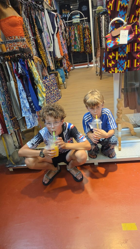 On rencontre des voyageurs qui passent une semaine, ou même trois semaines sur cette île. Ça nous fait réaliser que, bien que nous nous étions dit que nous allions calmer notre rythme durant ce voyage, pour les enfants et les devoirs, nous sommes toujours aussi rapide qu’avant!! Il y a trop de places qu’on veut voir! Mais comme je le dis souvent, les enfants sont de vrais champions, et Benoît a déjà terminé son cahier de math pour l’année. Il ne lui reste qu’un demi cahier de français à faire!