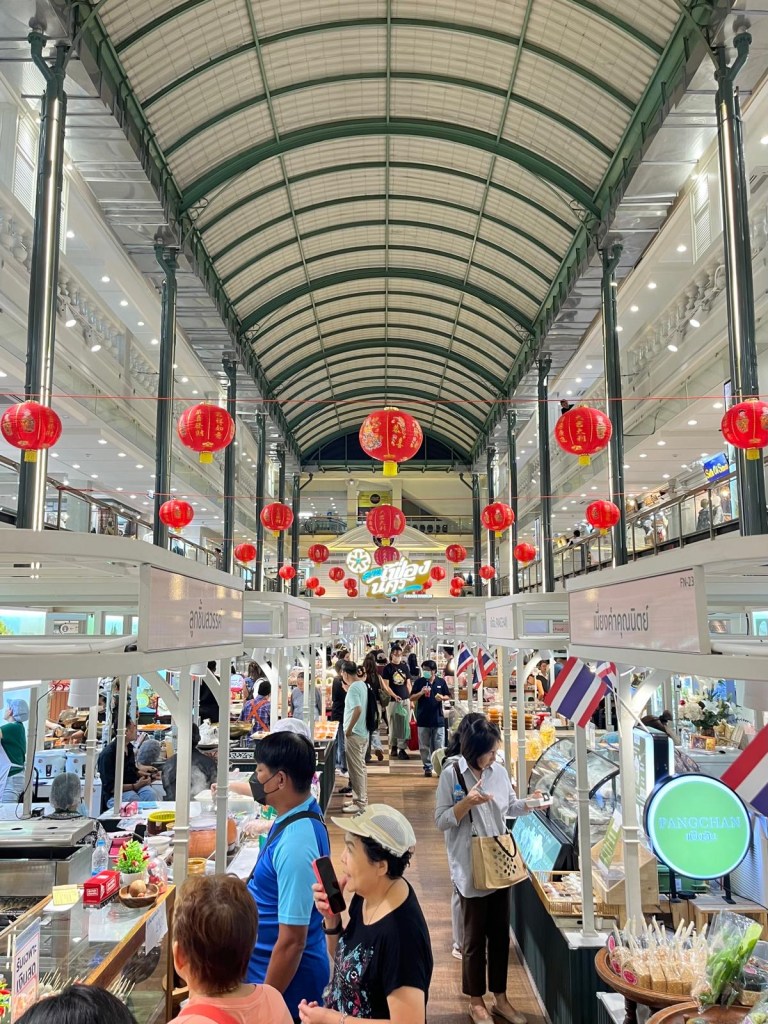 ICONSiam était magnifique. Beaucoup plus jolie que le Mall of Asia à Manille. Les Thaï ont vraiment un sens de l’esthétique fantastique! Mackaela avait fait des recherches et nous a dit qu’on devait aller à Sook Siam aussi: c’était le sous-sol du centre d’achat, et pour le Nouvel An Chinois c’était monté comme un village festifs, tout en rouge et or, avec des petits allés entre des kiosques de nourritures des différentes régions.