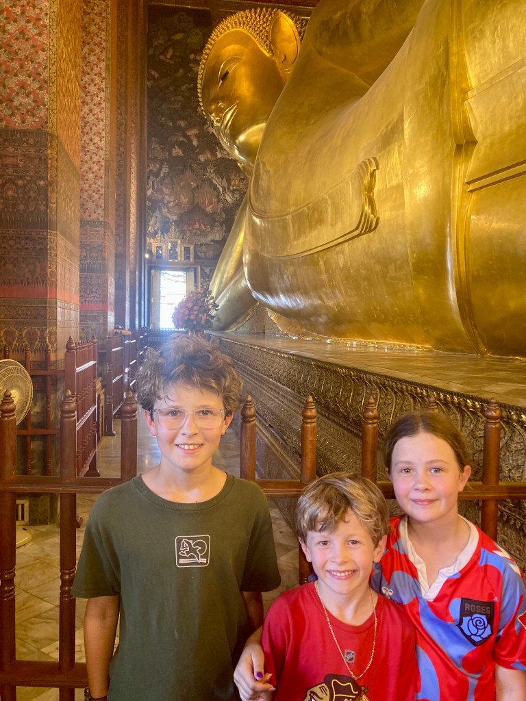 La première journée, on a fait le coin touristique. On restait dans le quartier de Khaosan, alors on a marché vers le Grand Palace et Wat Pho (reclining Buddha). C’est la 4e fois que j’allais à Bangkok, alors les arnaques, je les connais! Mais même Mackaela qui est ici pour la première fois avait entendu parlé de l’arnaque principale “the temple is closed for a ceremony. It only opens at 2 pm today!” sur TikTok. On en riait en marchant vers le Grand Palace, et disions simplement un petit merci aux gens qui nous disaient que le Palais était fermé aujourd’hui. Mais à 1 coin de rue du Palais, on était rendu avec un doute nous même! La quarantième personne qui nous a dit que c’était fermé, un gars qui passait et qui nous a interpellé pendant qu’un autre nous disait la même chose, était particulièrement bon. “He’s right. It’s closed today for a ceremony. I know that’s what everyone says, but I’m just a teacher, I’m not getting anything out of it! But it’a actually true that today it’s closed!” On n’en revenait pas qu’on avait un doute, mais on est allé pareil, et bien entendu c’était ouvert, avec un MILLION de touristes!!