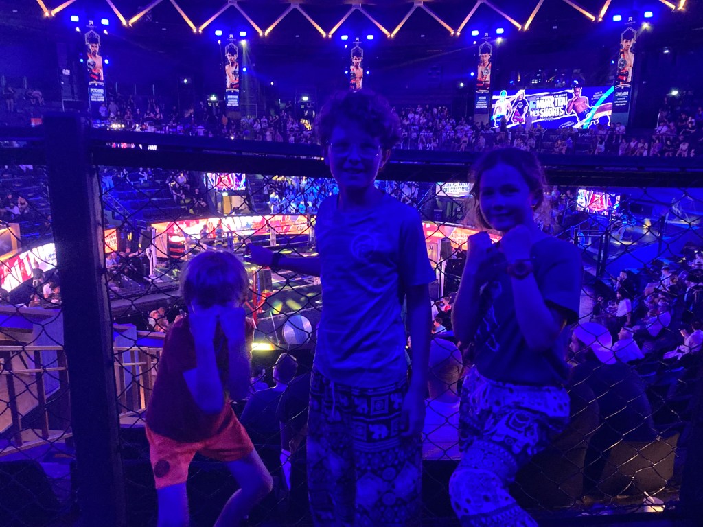 On est allé voir du Muay Thai 🥊 c’était super cool. On est allé au stade Rajadamnern et il avait des lumières. Il avait un knockout(un knockout c’est quand une personne n’en peut plus).