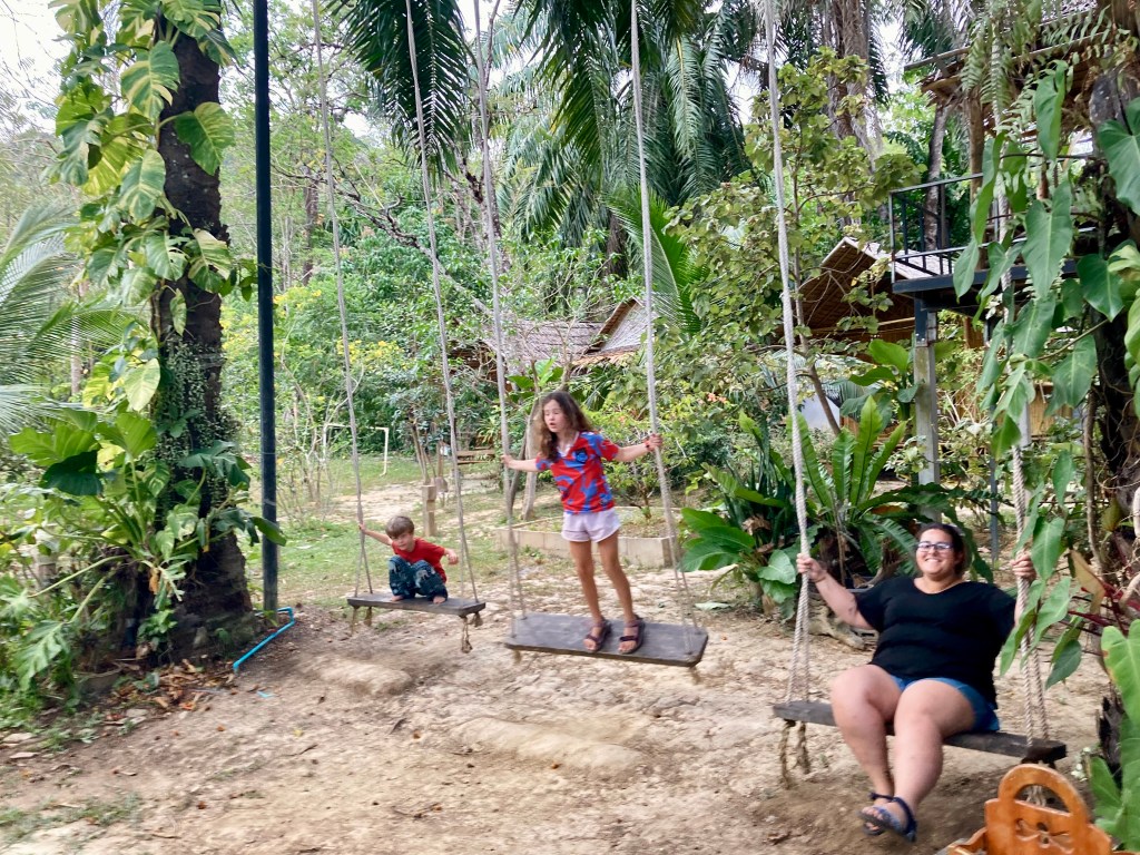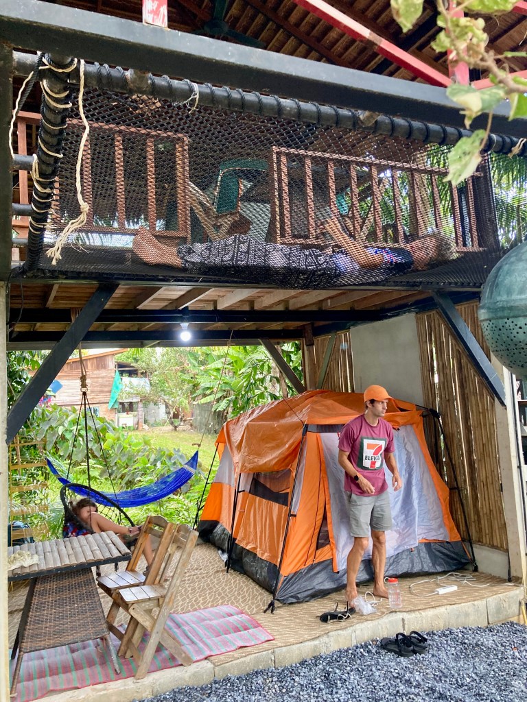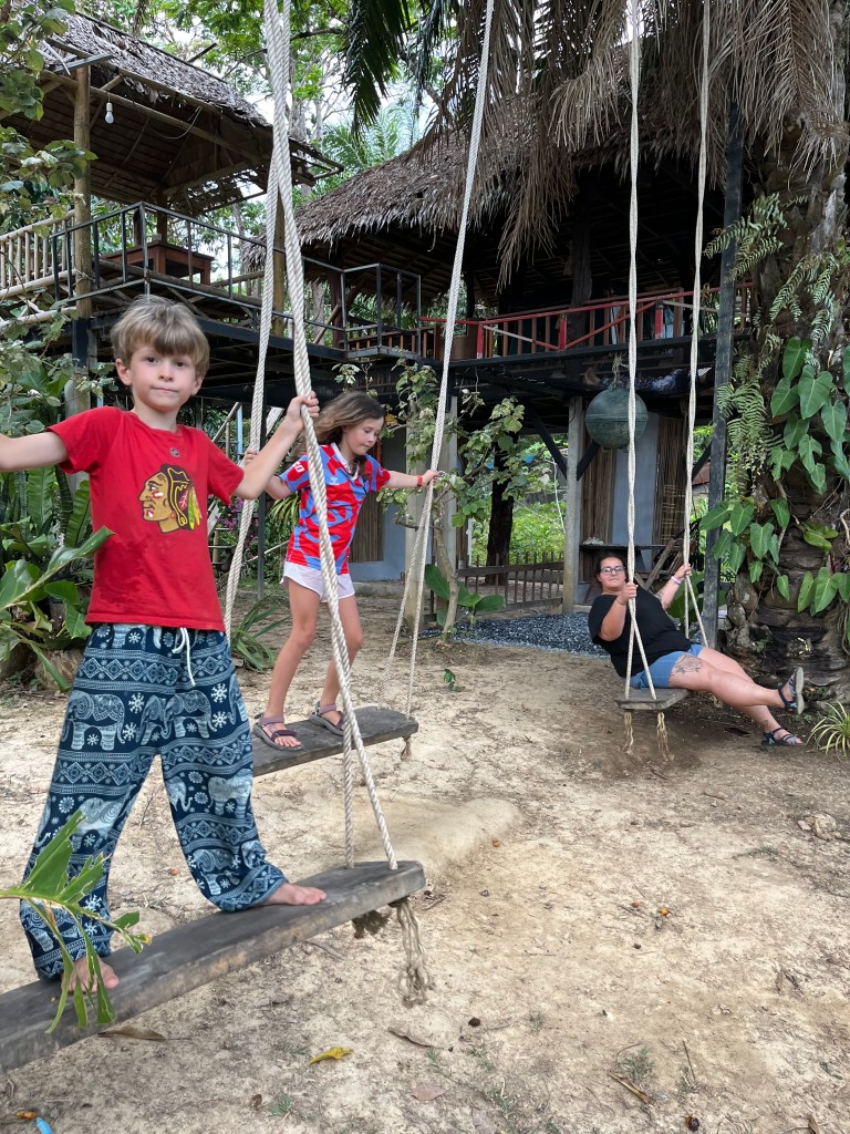 En 2012, avant que tous les voyageurs aillent des cells et des eSIM, Patrick et moi réservions très peu à l’avance. Nous arrivions dans une ville et des gens à l’arrêt de bus/train/traversier nous accostaient pour offrir des logements. Avec ceci en tête, nous étions confiants de ne rien réserver après Bangkok, puisqu’on voulait consulter Mackaela avant de choisir où aller. Nous n’avions pas prit en compte que c’était le Nouvel An Chinois, et que le Sud de la Thaïlande est particulièrement populaire avec les Chinois! Quand nous avons finalement réservé pour 6 personnes à Koh Lanta, il restait très peu de choix! Nous avons opté pour trois tentes à Rommai Forest Bungalows, du côté de la jungle plutôt que de la plage. Nous n’en parlions pas entre nous, mais nous étions tous un peu stressé que ce soit une catastrophe!