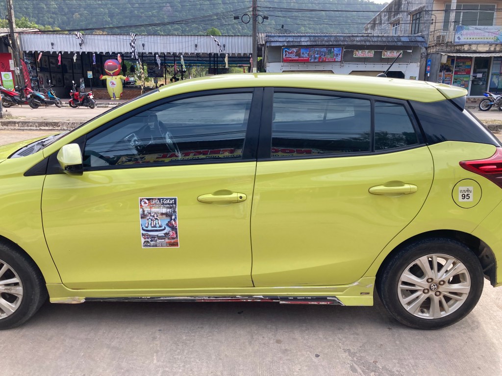 Le lendemain matin, après une nuit interrompu par les cris des coqs, des singes, puis de la prière matinale musulmane à au levé du soleil retransmit sur haut-parleurs, une autre surprise: le resto de la place est fermé, puisque c’est la première journée du Ramadan. Oh la la. Après le Nouvel An Chinois, c’est maintenant le Ramadan qui vient bouleverser nos plans! On devrait vraiment mieux s’informer!! Pour avoir plus de liberté sur cette petite île, on a donc décidé de louer une petite voiture. Équipe de notre Yaris circa 2007 couleurs balle-de-tennis, on se sentait invincible!!