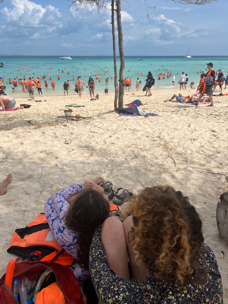 We saw this at our last stop as well: Bamboo Island. The island is a national park and there was a ranger with a megaphone patrolling the beach announcing the rule: you need a life jacket while swimming or there is a stiff fine! This seemed a bit much to us… so Claire took a little walk and discovered that off of the main beach there were tons of beautiful spots where people (mostly westerners) were swimming without life jackets. So we joined. And the rangers patrolling nearby did not even care.