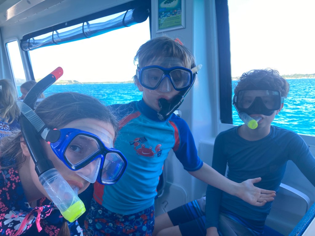 On est allé voir des poissons 🐠. Ils avaient du paddle boards et une grande glissades 🛝 et on pouvait sauter du bateau 🛥️ papa l’a fait mille fois.