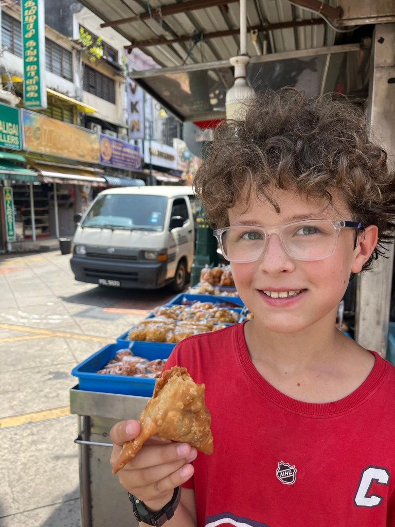 J’ai eu du mal à bien saisir les heures d’ouvertures variables de différents commerces, entre le nouvel an Chinois et le Ramadan, alors j’ai souvent traîner la famille vers des Hawker Stall fermés, mais on a vite fait d’autres découvertes. Et les chariots Indiens étaient toujours ouverts, pour des samosa hors pair!