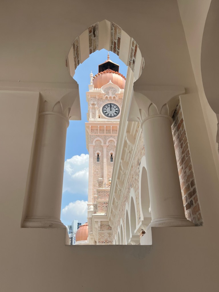 Ensuite on est tombé sur un magnifique bâtiment patrimonial qui venait de réouvrir après des années de rénovation, le Bangunan Sultan Abdul Saman. C’était un palais, devenu édifice gouvernemental britannique, puis repris par les Malaisiens. Puisque le bâtiment venait de réouvrir, l’entrée était gratuite jusqu’au lendemain. On a donc profité de quelques expositions sur l’histoire et l’architecture de Kuala Lumpur en admirant l’édifice restauré parfaitement!