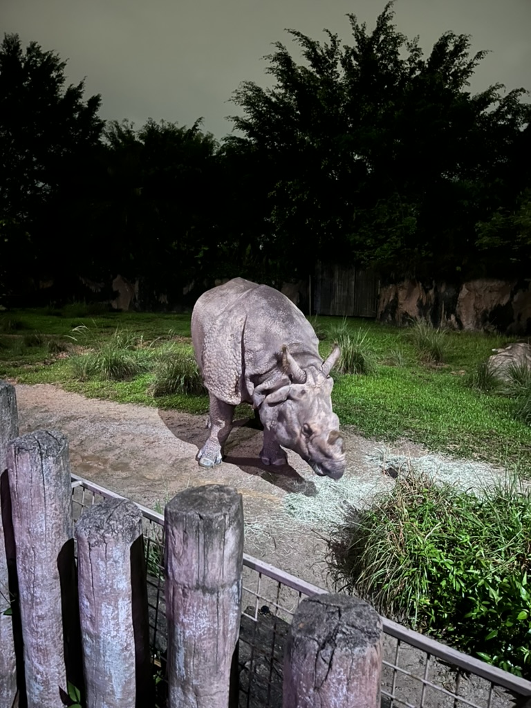 Quand il faisait vraiment noir on est sortie faire des trajets et soit voir des animaux de plus proche ou de nouveaux animaux. Quand on est arrivé à une partie vitrée on a pu regarder un hyène à quelques mètres seulement qui faisait la garde. Quand on a vu un gros tamanoir mama a trouvé que ça ressemblait à un extraterrestre. Et on a été au première loge pour voir un gros rhino.