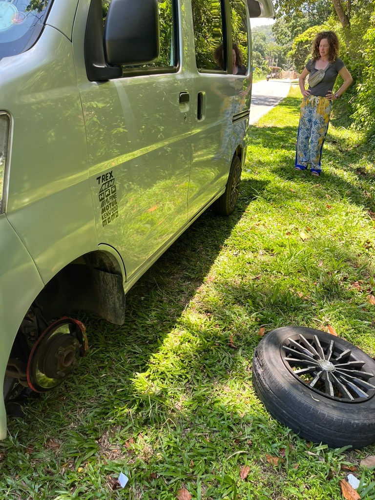 So the next morning our driver showed up for what I can only assume was his first day of work. He was young, polite, didn’t speak much English, and seemed a touch nervous. But we headed off and his driving was great… and so of course we got a flat tyre. No problem for us: our driver did an excellent job of demonstrating to me and the kids how to put on a spare tire, but once we were back in the van he was clearly a touch frazzled. After all, the van had a temporary tyre and we still had a good distance to go. Fortunately, we were in no hurry, and managed to communicate that via a translation app to our driver. Relief took over his face immediately. We stopped for fuel*, spent some time in a local garage seeing the boys change the tires (all of them!) on our van, as well as those of a transport truck. In the end, we made it to our destination a little later than planned, but after an afternoon with the kind of entertainment that tourists would line up to pay for. Our driver had a rough first day on the job, but he did great, and looked to be momentarily on the verge of tears when I gave him a decent tip.