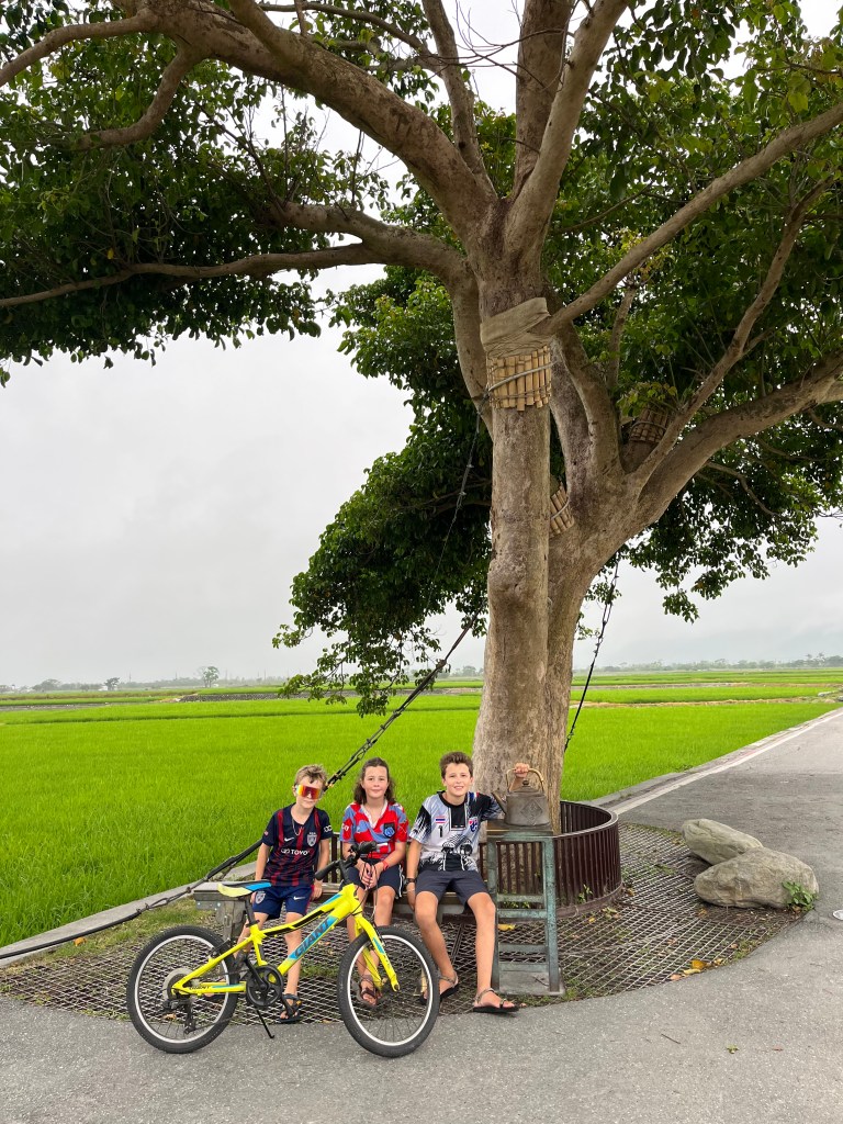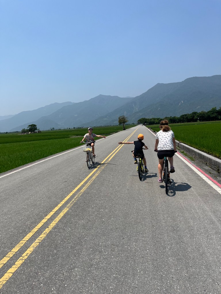 Le seul but de venir à Chishang était de faire du vélo. Le village était tout petit mais la vue autour était spectaculaire. On était dans une vallée entourée par des montagnes et des champs de riz.