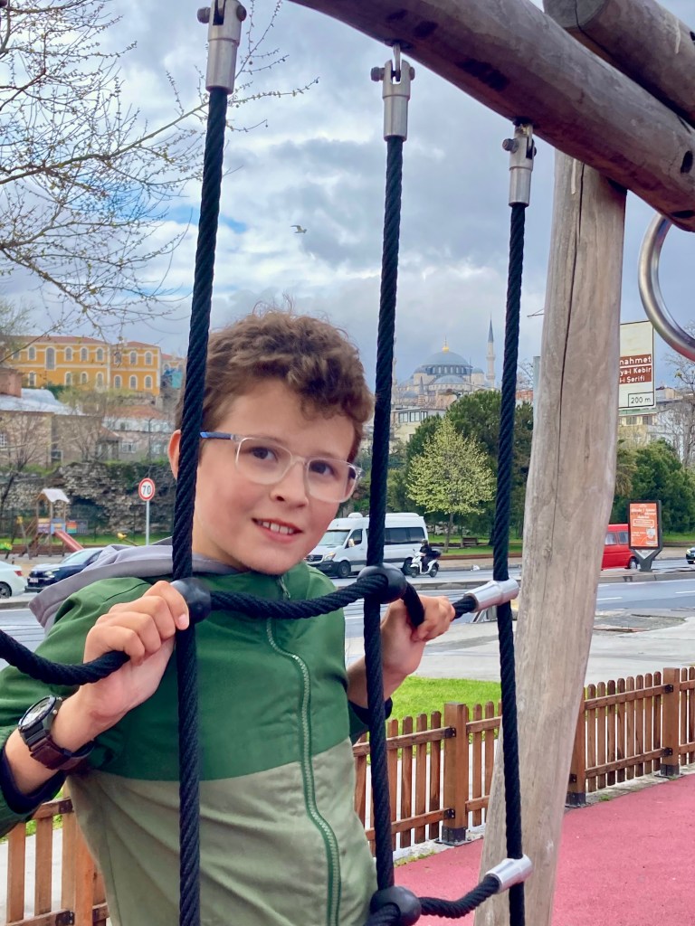 Henri a ADORÉ Istanbul, dès qu’on y a mit pied. Je pense qu’il va bien aimé l’Europe! On a trouvé un hôtel dans le quartier le plus touristique et ancien de la ville, Sultanahmet. Après Taïwan, qui est ultra ultra sécuritaire et paisible, il fallait qu’on s’habitue un peu. Les restaurateurs et magasiniers sont très insistants, et il paraît qu’il y a beaucoup d’arnaques et de pickpockets, bien qu’on a rien vu de cela. Aussi, Istanbul est rendu vraiment cher, avec certains musées qui chargent 90$ l’entrée. Yikes! J’ai pris une petite journée à m’habituer à tout ça, et ça va sans dire qu’on n’a pas acheté 5 billets SVP pour les musées là.