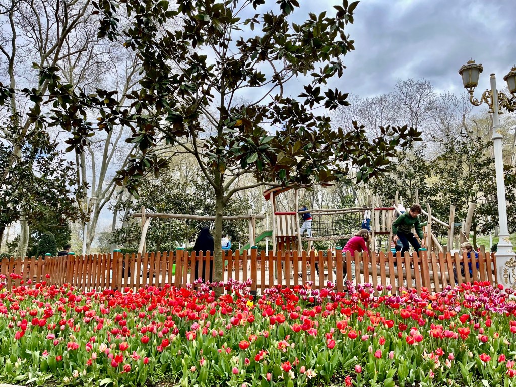 Le soleil est revenu pour notre troisième journée et on a eu une journée magnifique! Il faisait 10-13 degrés (comme à Montréal!), mais le soleil était chaud et les tulipes étaient sortis. En plus, c’était la Journée Nationale de la Turquie, alors toute la population Turc déambulaient dans les rues. On a marché à travers notre quartier, traversé un pont où pêchaient des trentaines de personnes, puis on s’est promené à Galata et Taksim, qui m’ont beaucoup fait pensé à Canal Street, SoHo, Greenwich Village, et Broadway à NYC. Henri est tombé encore plus en amour avec la ville!