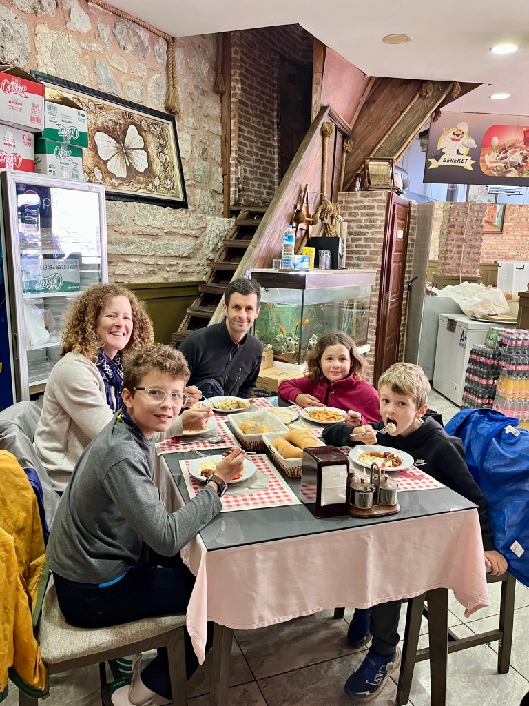 Pour notre deuxième journée à Istanbul, quelque chose d’inusité est arrivé: il pleuvait! Dans les 4 mois de notre voyage, je pense qu’on peut compter sur une main les fois qu’il a plu. Et encore moins les fois qu’il a plu pour une grosse partie de la journée! Mais quelques uns d’entre nous avaient un petit rhume, et on combattait un peu de décalage horaire, alors on a prit une journée assez relaxe, avec quelques petites marches dans le quartier.